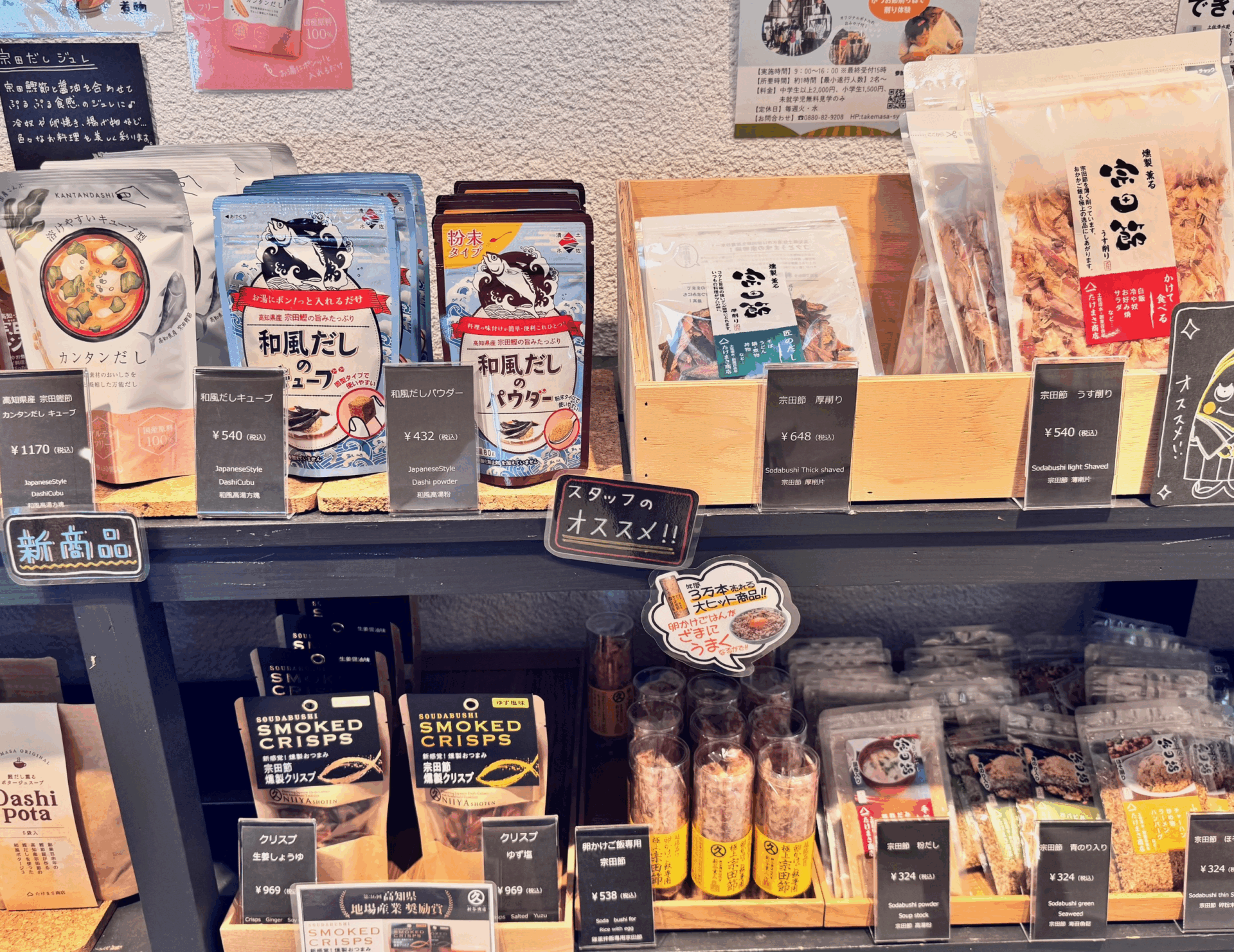 一口に宗田節と言っても、本場土佐清水では薄削りや粗削り、パウダータイプのものや調味料としてそのまま使える商品、だし醤油などさまざまな商品があります。