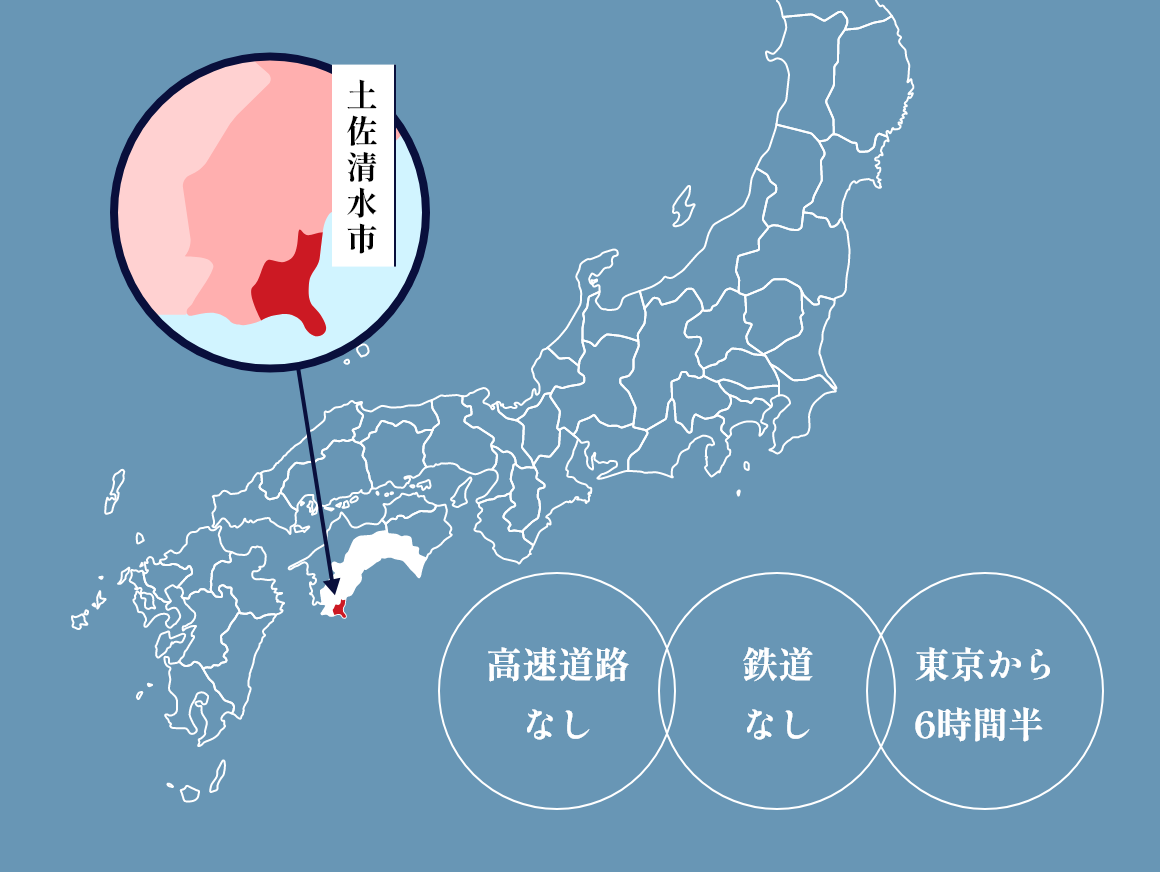 土佐清水市は、高知県南西部の漁師町。高速道路がなく、最寄り駅もない。