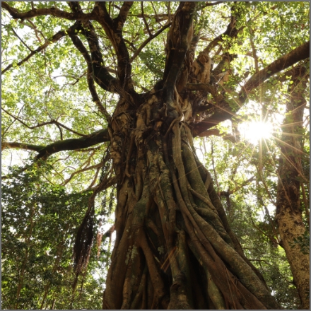 クワ科イチジク属の常緑亜熱帯植物であるアコウ。他の木(親木)に着生して成長することが多く、親木を覆いつくして枯らしてしまうこともあります。