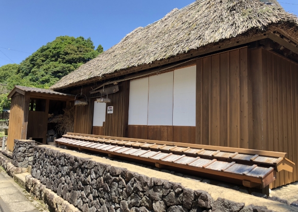 当時の暮らしぶりが感じられる、生誕地に復元された茅葺き屋根・木造平屋のジョン万次郎生家。