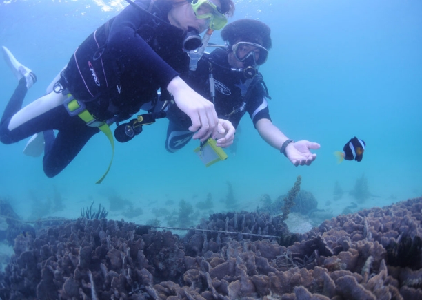 海中公園でもある竜串の海は、1年中ダイブできるスキューバスポット。サンゴ礁の間を色とりどりの魚たちが群れ泳ぐ姿を間近で見ることができます。