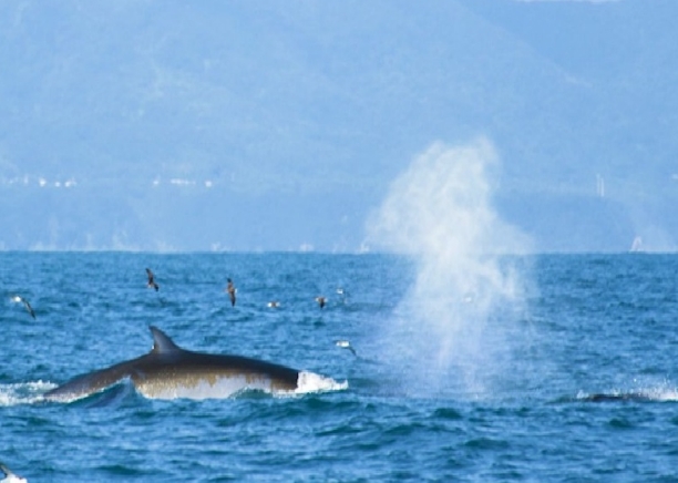 潮を吹き上げながら泳ぐクジラの雄大な姿を楽しむことができます。