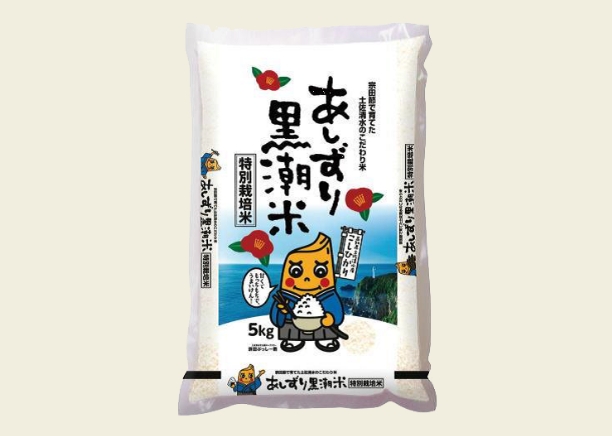 土佐清水のブランド米「あしずり黒潮米」は、土佐湾のにがりと宗田節の魚粉を土作りに使用した田んぼで育てたお米。甘みがあり、もっちりした食感が好評です。